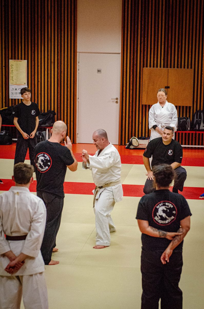 Expert en tai jitsu, Dominique Le Bihan a apporté une autre dimension au stage grâce à un travail centré sur la self-défense moderne. Son approche technique, basée sur l’utilisation du corps avec contrôle, souplesse et explosivité, a offert aux pratiquants une vision claire des réponses possibles en situation réelle. Son sens pédagogique, allié à une grande disponibilité, a renforcé la dynamique du groupe et permis à chacun de se dépasser.